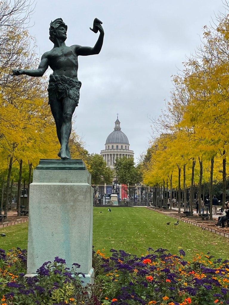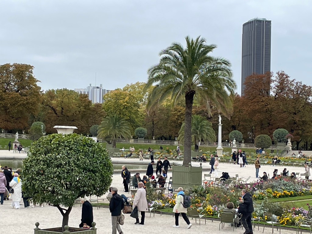 Un peu plus tard, sous un ciel plutôt nuageux, nous marchons jusqu’à la station de métro de la Bourse, pour prendre le trajet 9, puis la ligne 4. En moins de trente minutes, nous arrivons à la station Odéon, à deux pas du Jardin du Luxembourg.