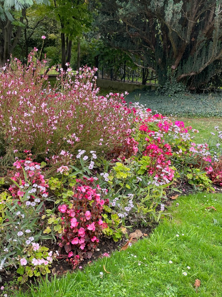 Ce Jardin me rappelle des instants de relaxation au cœur de moments un peu trop remplis. Je l’ai découvert un soir, après une longue journée au Salon du livre de Paris. Le brouhaha constant de la salle d’exposition et le retour à mon hôtel par un métro bondé m’avaient donné un solide mal de tête. J’ai cherché une pharmacie, mais je me suis trompé de chemin, ce qui m’a fait découvrir ce parc. Y marcher a fait descendre la tension dans mon corps. La céphalée s’est envolée. Depuis, je passe plusieurs heures dans ce parc à chacune de mes visites.