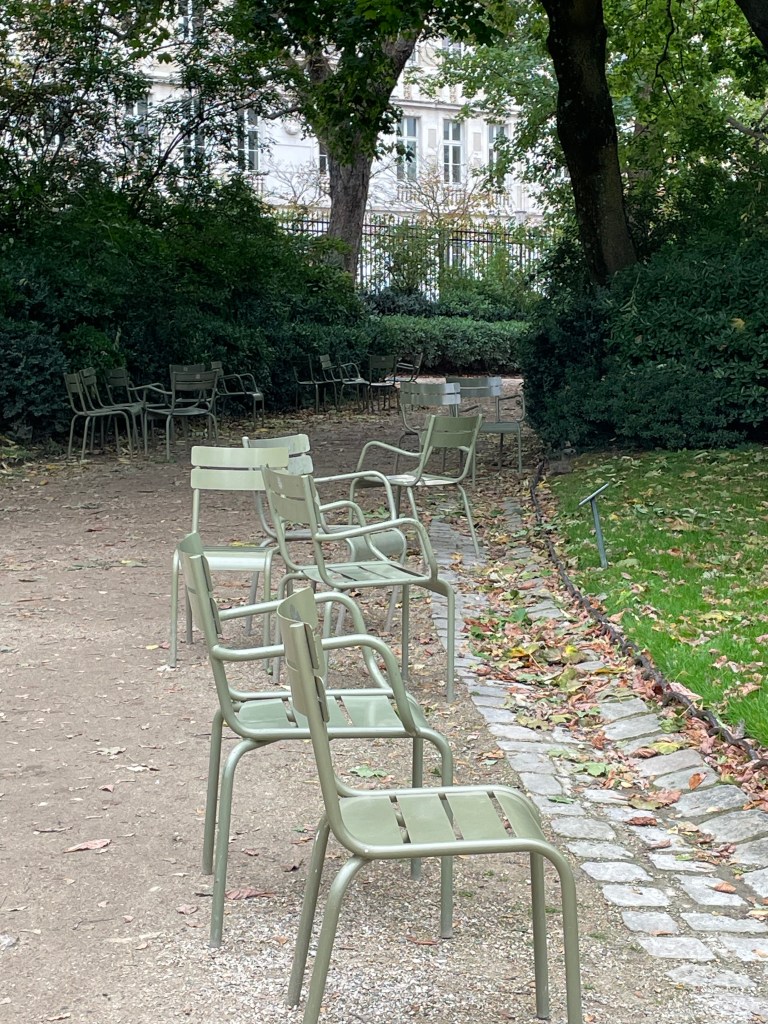 De notre liste d’endroits à visiter lors de ce voyage retour à Paris, il ne reste que le Jardin du Luxembourg. Nous avons hâte de nous promener dans ses allées de gravier fin bordées d’arbres et de platebandes fleuries, pour simplement prendre l’air. Combien de fois, au fil des ans, me suis-je assise sur l’une des chaises, au milieu d’arbres ou devant la fontaine, pour déguster un café, un livre en main ? Des dizaines.