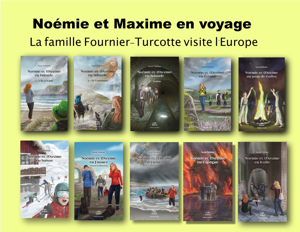 Mes textes de voyages, sous la forme de billets sur mon blogue, de nouvelles ou de récits, ont servi de toile de fond pour une autre collection qui comprendra onze tomes. Mes idées se sont transformées en romans pour ado et préado. La collection « Noémie et Maxime en voyage » sera terminée à l’hiver 2025-2026.
