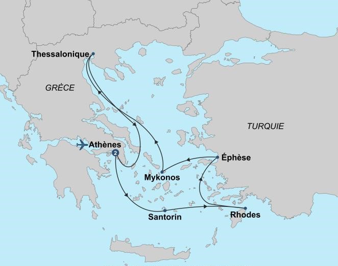 Amateurs d’histoire de toutes les époques, nous avions lu sur la Grèce… mais pas tant que ça. L’itinéraire montrait « Athènes » comme première destination. Déjà, je rêvais… Pour le reste, tout a l’air intéressant. Ça demandera un peu de recherche pour préparer les visites à chacune des destinations.